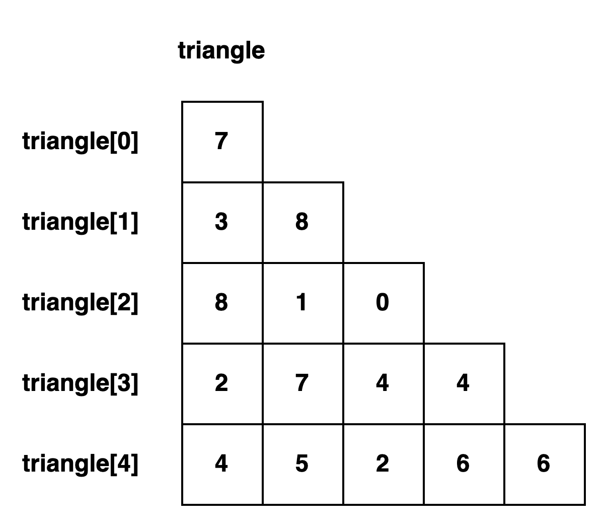 1. 주어진 삼각형은 시각적인 표현이고, 삼각형을 배열로 보면 다음과 같습니다.