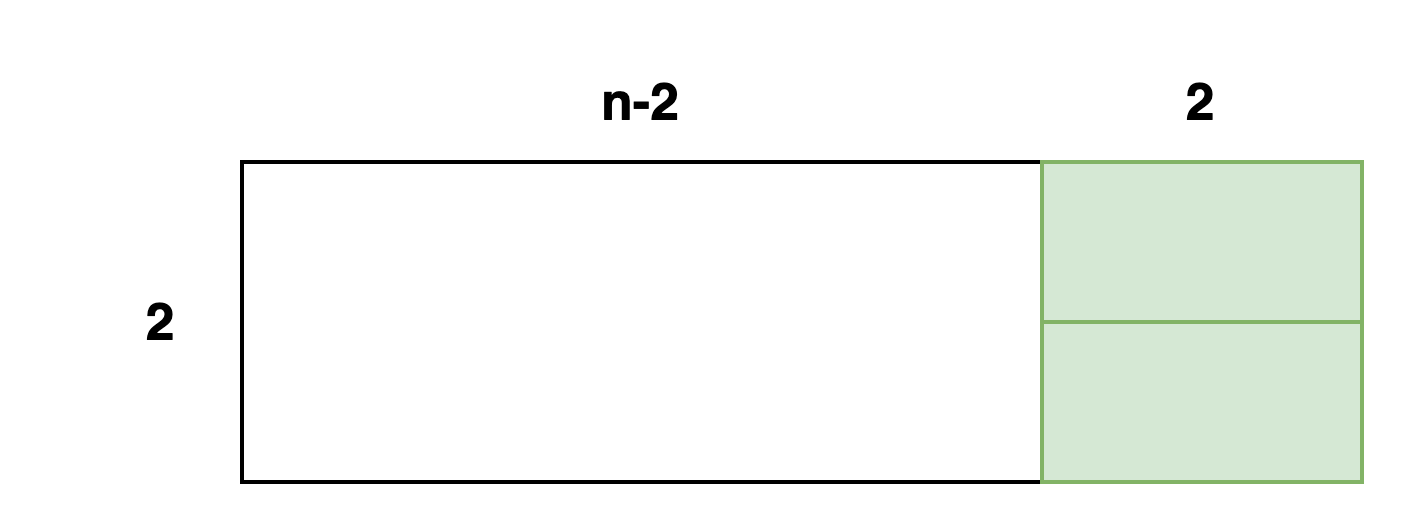 dp[n-2]는 마지막 타일을 가로로 배치하여 가로의 길이가 2인 타일을 위아래로 2개 배치하는 경우입니다.