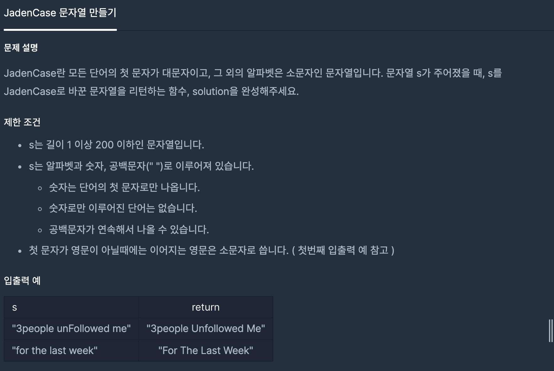 2. 문자열이 주어질 때 해당 문자열을 JadenCase 문자열로 바꾸어 반환하라.