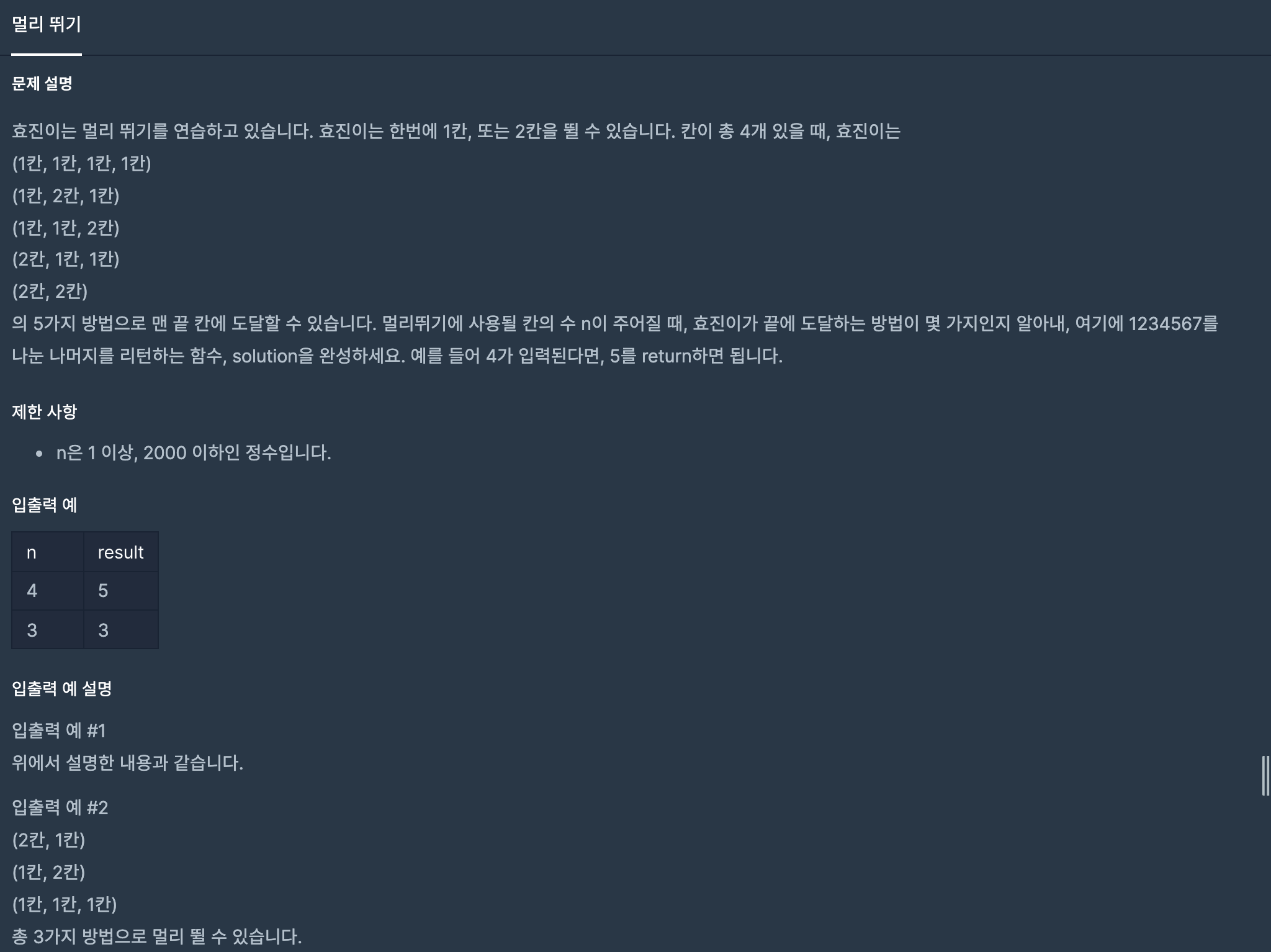 프로그래머스 12914번 - 멀리 뛰기
