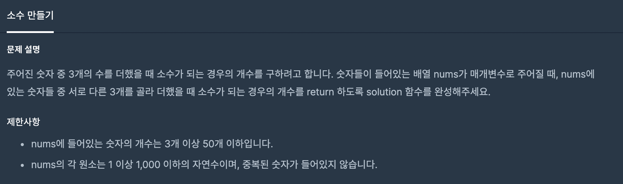 프로그래머스 12977번 - 소수 만들기