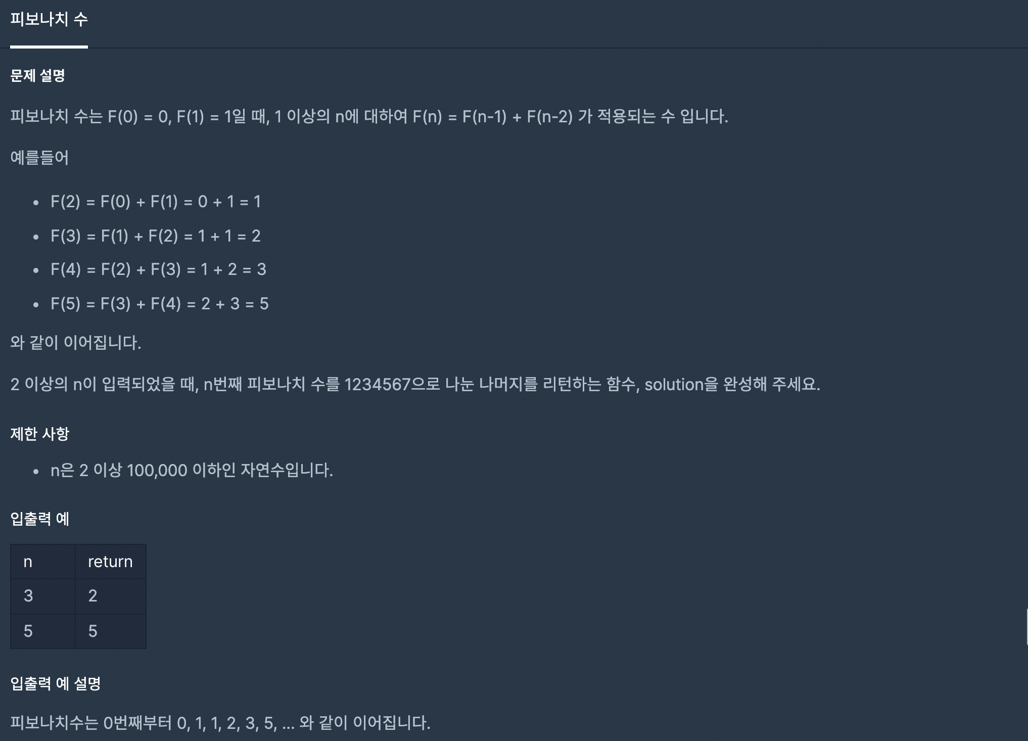 프로그래머스 12945번 - 피보나치 수